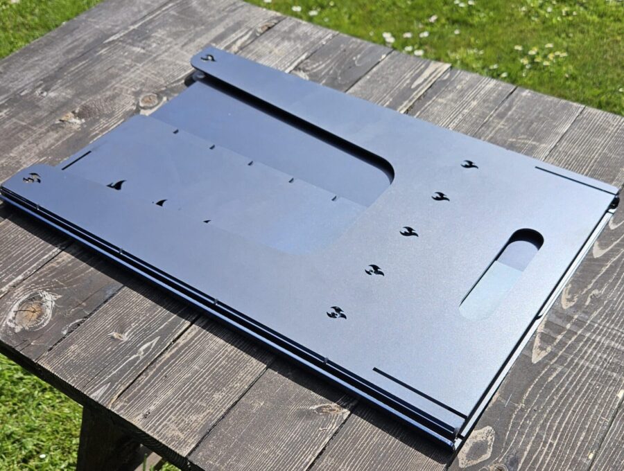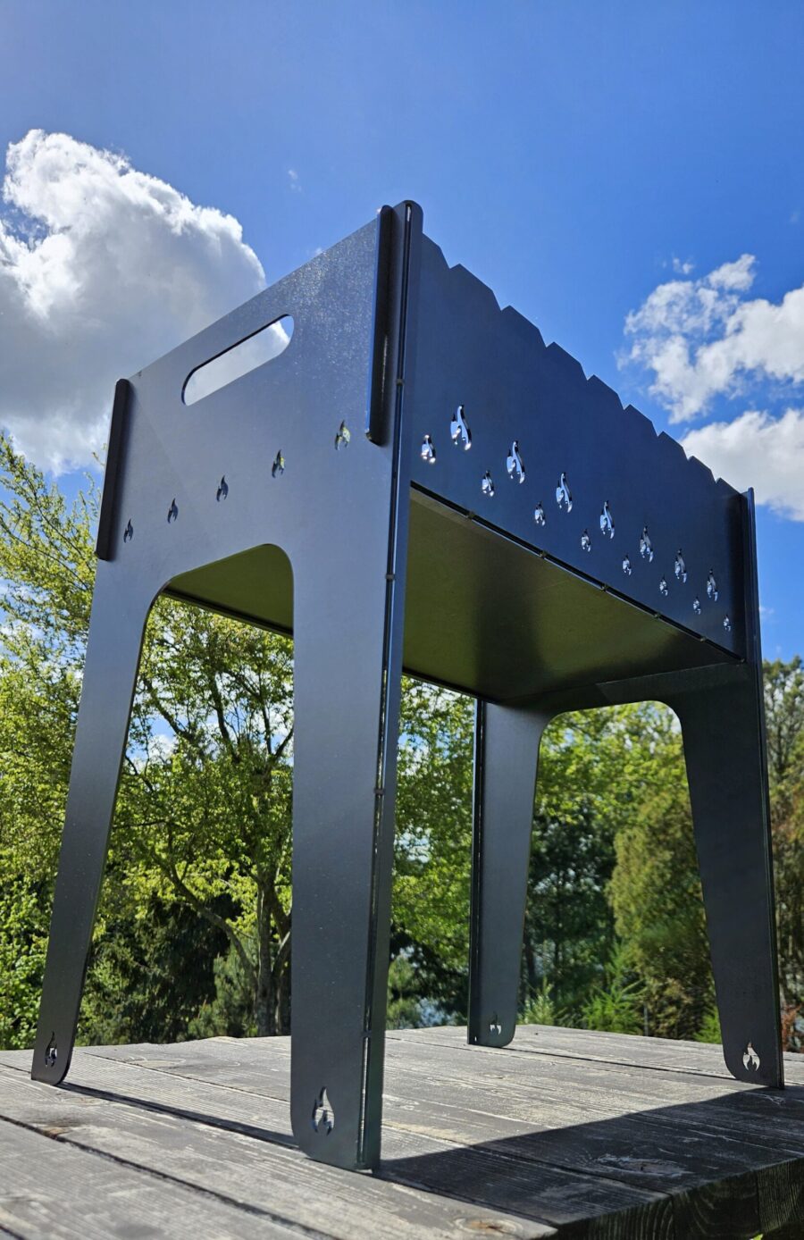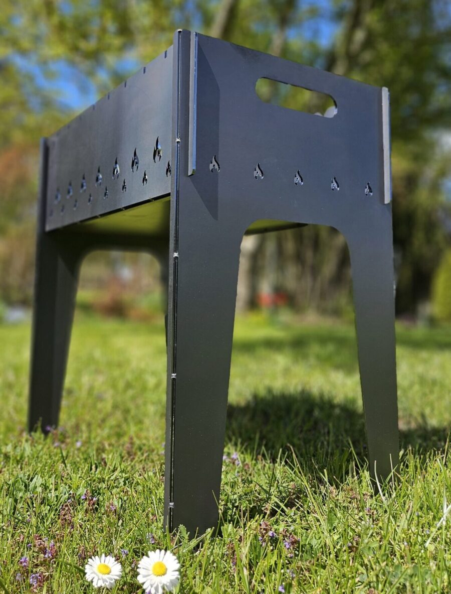 Ši kelioninė šašlykinė pagaminta ilgesnėmis kojelėmis, kad kepimas būtų dar patogesnis. Dėl surenkamos konstrukcijos ją patogu transportuoti, o surinkimas užtrunka vos kelias akimirkas.