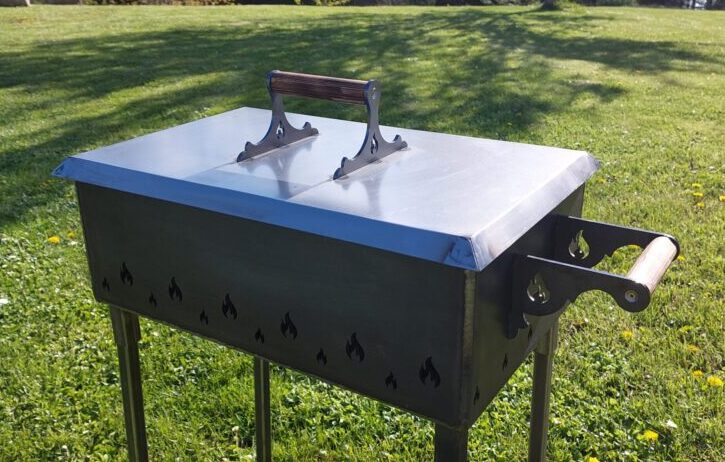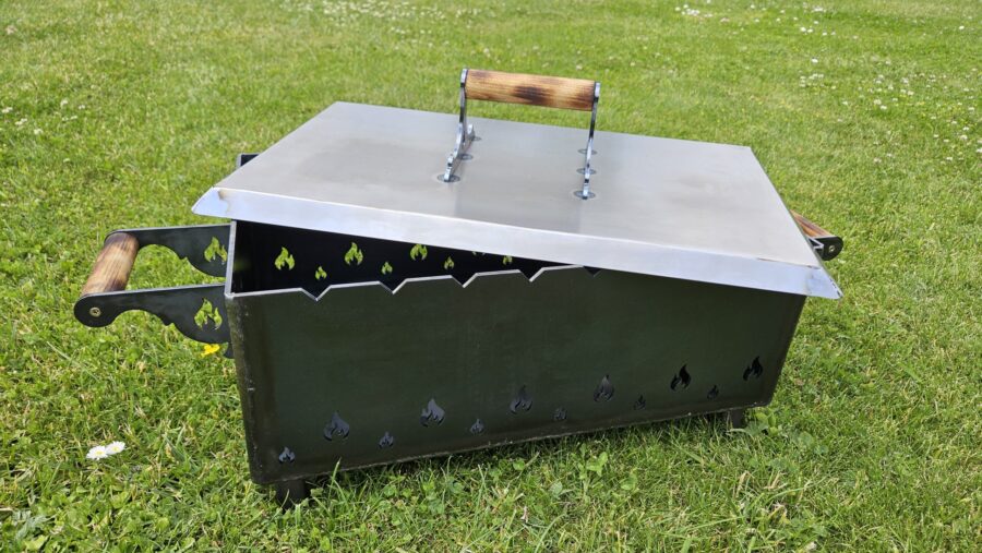 Tvirtas ir praktiškas kepsninės dangtis, skirtas apsaugai nuo vėjo ir lietaus. Pagamintas iš 2mm storio metalo. Dangtis turi medinę rankeną, todėl jį saugu kilnoti.