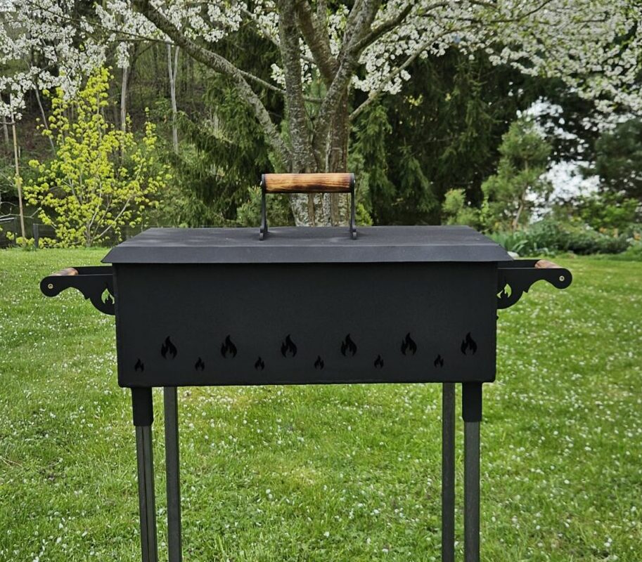Ši suvirinta šašlykinė gaminama su nuimamomis kojelėmis – tai tvirta ir patogi kepsninė, skirta naudojimui kieme, sodyboje ar išvykoms. Virinta konstrukcija iš 5 mm storio metalo užtikrina ilgaamžiškumą, atsparumą karščiui ir stabilumą kepant.